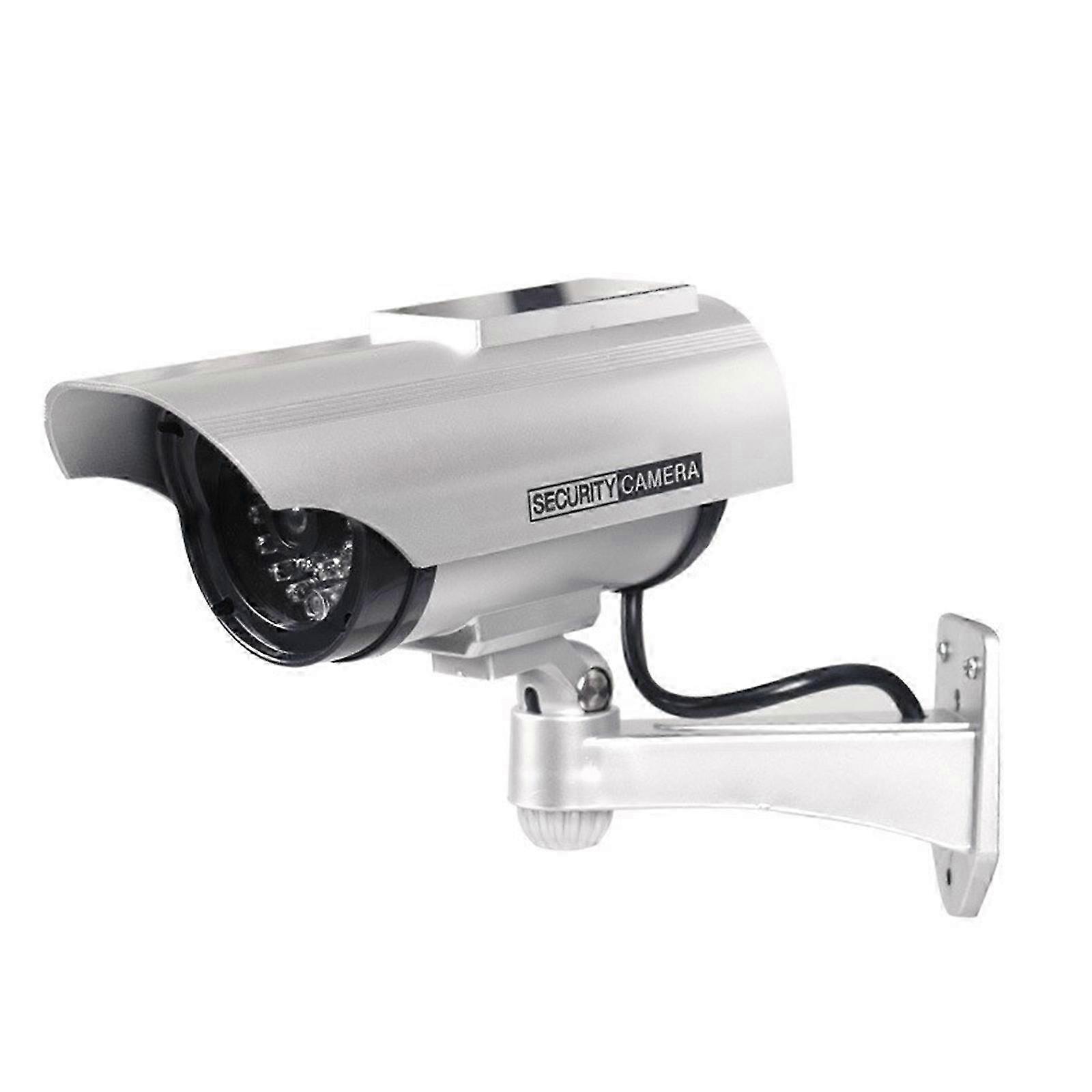 Dummy Fake Security Camera, with LED Light at Night, for Home and Businesses Security Indoor/Outdoor Waterproof Silver -Y