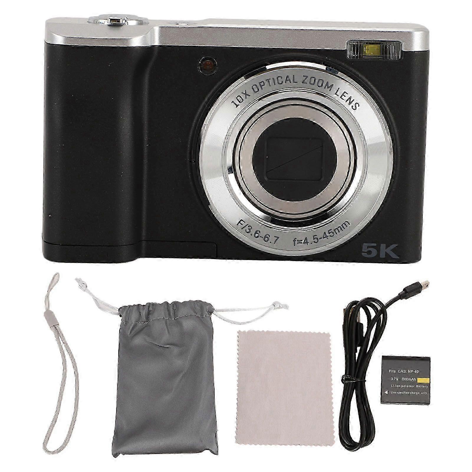 5K Digital Camera for Photography 10x Optical Zoom Retractable Lens 16MP Front 12MP Rear 6 Axis Anti Shake Autofocus Selfie Camera with Touch Screen