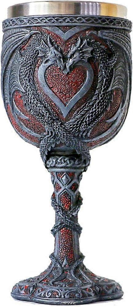 Medieval Double Dragon Wine Goblet - Valentines Dungeons and Dragons Wine Chalice -7oz Stainless Steel Drinking Cup - Romantic Novelty Gothic Gift Par