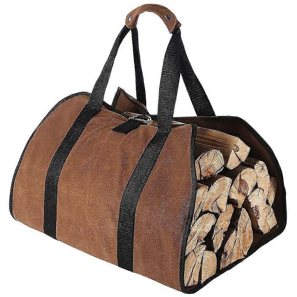 TRANSPORT WOOD EASIER - The firewood log carrier helps moving wood from your wood pile to fireplace with ease rather than a struggle and keep clothes cleaner when carrying wood indoors LARGE LOG CAPACITY - 38 long X 18 wide, with 6.5 handles, this firewood bag holder is large enough to carry a fair amount of logs, firewood and kindlings. Side-open design allows to carry logs of any length HEAVY CANVAS MATERIAL - Made of heavy duty 16oz waxed cotton canvas, the firewood carrying bag is tear resistant, waterproof and it cleans off easily PRACTICAL AND SESURE - Reinforced stitching handles and a canvas protection pad with snap lock for easy grip; a metal loop closure with a strap on top to secure the load for safe carrying EASY TO STORAGE - The firewood bag can be folded up easily, compact and saving space when folded. Great for camping, home and outside