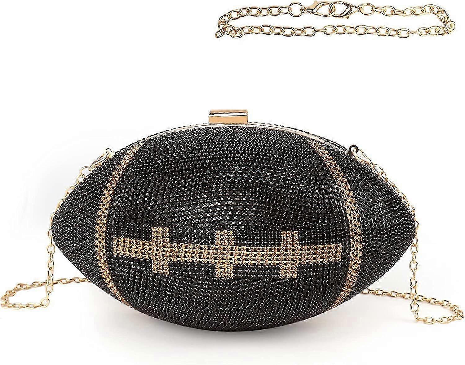 Football Bling Purse Rhinestone Clutch Purses For Women Crystal Ball Purse Rugby Ball Shaped Bag With Shoulder Chain