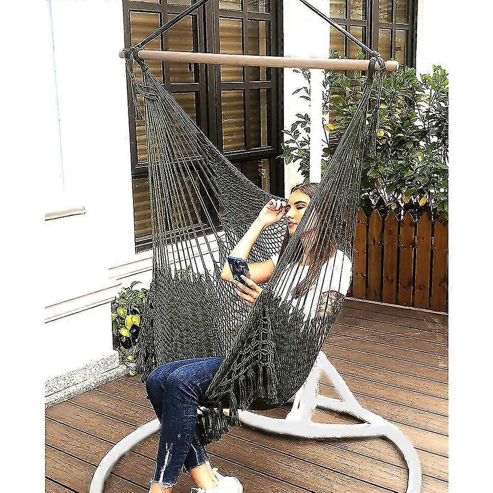 Hammock Chair Super Large Hanging Chair Soft-Spun Cotton Rope Weaving Chair, Bar Wide Seat Lace Swing Chair Decoration A