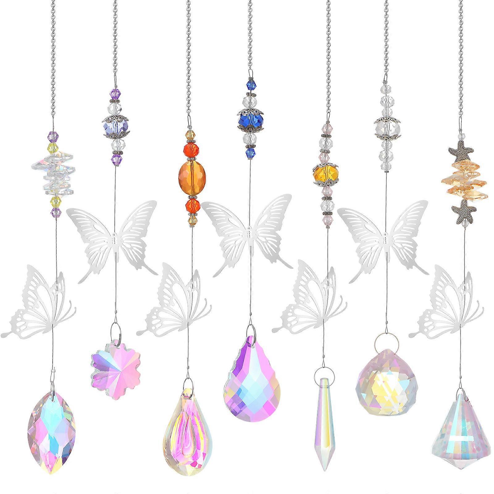 Crystal Butterfly Sun Catcher Hanging Ornaments 7pcs Prism Decorative Pendants for Windows, Garden, Home, Indoor & Outdoor Decorations