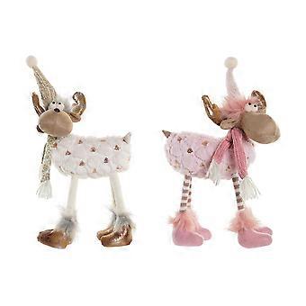 Christmas bauble DKD Home Decor White Pink Reindeer 12 x 20 x 40 cm (2 Units)