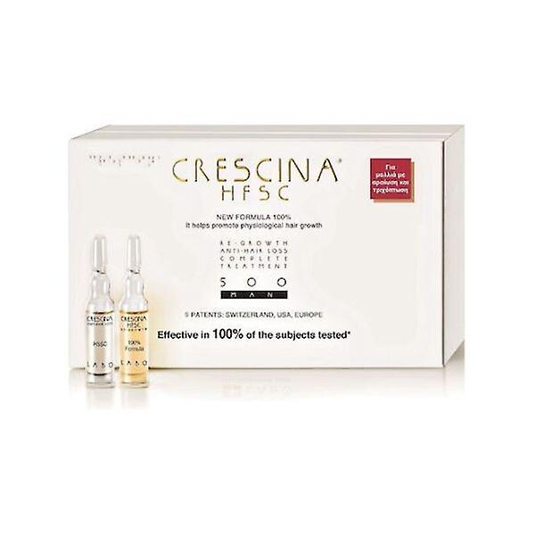 CRESCINA HFSC COMPLETE TREATMENT 500, Treatment for Men with medium thinning stages and intense hair loss, 10 & 10 ampoules x 3.5ml Activates the normal growth of hair in areas with thinning. Effective in 100% of those tested *. With active ingredients of transdermal technology Crescina Growth is a topical dermo-cosmetic treatment focused on the treatment of thinning hair, which activates the normal growth of hair and is not just another product against hair loss in order to slow down or prevent the detachment of hair that already are present on the scalp. Crescina Transdermic Development HFSC is designed to prevent and treat thinning due to normal (non-pathological) causes and for cases where the quantity and quality of hair gradually decreases due to the reduced activity of the hair follicles. Crescina Transdermic HFSC Complete Growth and Anti-Hair Loss Treatment Man 500 combines in one package two formulations Crescina Transdermic Growth HFSC and Crescina Transdermic Against Hair Loss. It is a specially designed male composition for the middle stages of thinning and for intense hair loss and is available in a package with 10 + 10 vials (one month treatment). The vials contain 3.5 ml of preparation. The patented composition, thanks to Labo Transdermal Technology, allows the active molecules to enter the hair system not only through the hair follicles but also transdermally, ie through the layers of the scalp (skin and dermis). Thanks to their low molecular weight and the presence of 3 absorption enhancers, the penetration and performance of the functional active ingredients is facilitated. The treatment achieves overall action in all hair structures and its composition enhances the normal growth of hair and acts against hair loss in healthy and semi-active follicles. * EFFECTIVE ON 100% OF PERSONS SUBMITTED TO TEST: Results after 4 months in the in vivo clinical / instrumental double-blind randomized trial, controlled with placebo in 46 people (of whom 23 received Crescina HFSC and the remaining 23 received placebo). The men tested had grade II, III, III vertex and IV dilutions on the Hamilton-Norwood scale. Positive results were recorded in all individuals, namely they grew from +7 minimum to +41 maximum new hairs in electronically measured area 1,8 cm. The test results are statistically significant. GROWTH of 6.300 NEW HAIRS on average after 4 months of treatment with Crescina HFSC 100%. Instrumental analysis performed with phototrichogram. Dermatologically tested composition. Material The basic composition of Crescina Transdermic Growth HFSC, protected by various patents, combines two amino acids - Cysteine and Lysine (essential elements for hair keratinization), with a Glycoprotein and a vasodilator containing a hydrochloric acid. Numerous efficacy trials have demonstrated the ability of this combination to stimulate normal hair growth by affecting the bulbs of active and semi-inactive hair follicles that have not completely atrophied. In particular, the composition is characterized by the HFSC Complex (Stem-Engine with Hydrolyzed Rice Protein and Corosolic Acid), Swiss Patent CH 703 390. The composition is enhanced by the patented Transdermal Technology of Labo (Swiss Patent 711) which CH 466 allows the active ingredients to penetrate into the different layers of the skin and scalp and with the Growth Enhancement Complex (Methionine, Glycine, Copper Tripeptide-1) which provides the hair follicle cells with molecules that aid the growth process and 3 absorption enhancers ( Pentylene Glycol, Decylene Glycol, Caprylyl Glycol). Crescina Transdermic Against Hair Loss combines the main active ingredients (Hydroxyprolin, Aspartic Acid, Enzyme Activator and Taurine) with Hydrolyzed Yeast Protein and Acetyl Tetrapeptide-3 to strengthen the hair from the root (in vitro active ingredients) absorption to facilitate their penetration through both the hair system and the scalp. The composition is enriched with the HSSC Complex. Application tips Crescina Transdermic HFSC Complete Treatment combines vials containing Crescina Transdermic Growth HFSC (amber-colored vials) and vials containing Crescina Transdermic Anti-Hair Loss (clear vials). Each vial contains 3,5 ml of preparation and is suitable for use every other day for the first 5 days of the week, followed by a break of two days. The 20 vials contained in the package are enough for one month of treatment. The treatment can be repeated several times in a year. Treatment for at least 2 months is recommended. Apply one vial a day on dry and clean scalp, all over the surface. Do not spread the product along the hair shafts. Gently massage for a few minutes. To open and use the vial, follow these instructions: Remove the special hard plastic vial crusher from the package slot. Attach the crusher to the vial by simply placing it on the neck of the vial. Hold the crusher between the index finger and the thumb and break the top of the vial by pressing lightly and firmly. Remove the special soft applicator with the lid from the package slot. Attach the soft spout to the neck of the opened vial and remove the cap from the spout. Apply the formulation on dry and clean scalp, line by line, taking care not to let it come in contact with the face. Gently massage to help absorb the preparation. WARNINGS: The preparation contains a mild vasodilator, which can cause a mild and brief skin reaction with heat and redness on the scalp. Wash your hands after application.