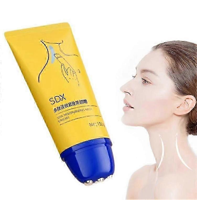 Neck Cream, Anti-Aging Neck Firming Cream with Roller Massage, Hydrating & Lifting, Skin Tightening Cream, Reduces Wrinkles, Fine Lines, Smooths Skin