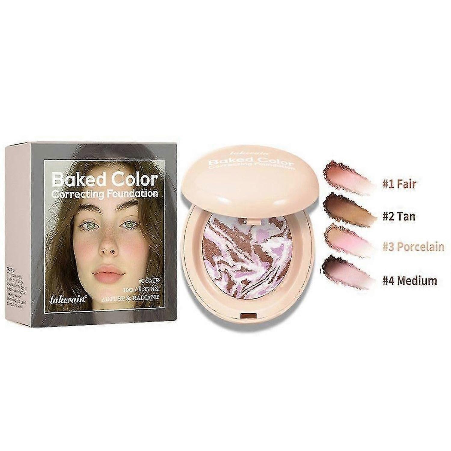 Baked Foundation, Color Correcting Powder Foundation, Light to Medium Coverage Baked Foundation for Mature Skin, Long Lasting Mineral Powder foundatio