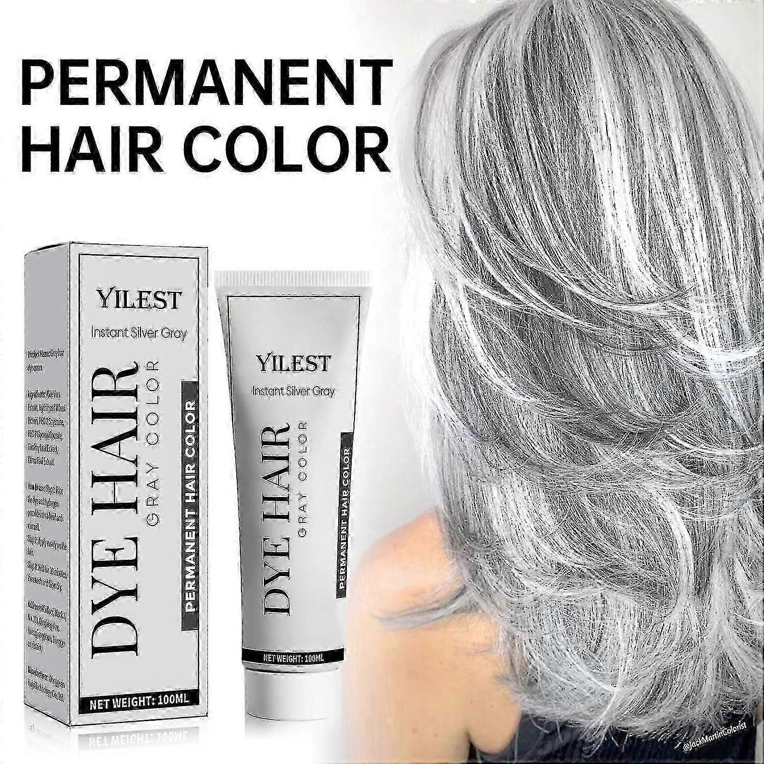 Silver Gray Natural Hair Dye Cream - Our hair dye is made from natural plant extracts, providing a safe and gentle coloring experience. Fade-resistant, ensuring that your hair color remains vibrant and true-to-tone for weeks to come.<br> Hydrate and Moisturize- Experience gentle and safe hair coloring with our hair dye cream, mild and non-irritating, nourish the scalp and supplement the nutrients needed by the hair.<br> How To Use- All you have to do is apply it well, wait 40-60 minutes, then rinse it out and you'll have your favorite shiny hair color.<br> Save Time & Money- With this hair dye shampoo, you can dye hair at home. Forget long and costly visits to hair salons. You can now dye your hair quickly and easily at home by yourself and save a ton of money.<br> Please treat hair care products in perspective, and can't be used as prescription drugs or medicines.<br> Wide Use- Our hair coloring creams are suitable for all hair types, for both men and women. Whether you want a subtle change or a bold statement, you can easily change your hair style while enjoying a long-lasting fresh scent.