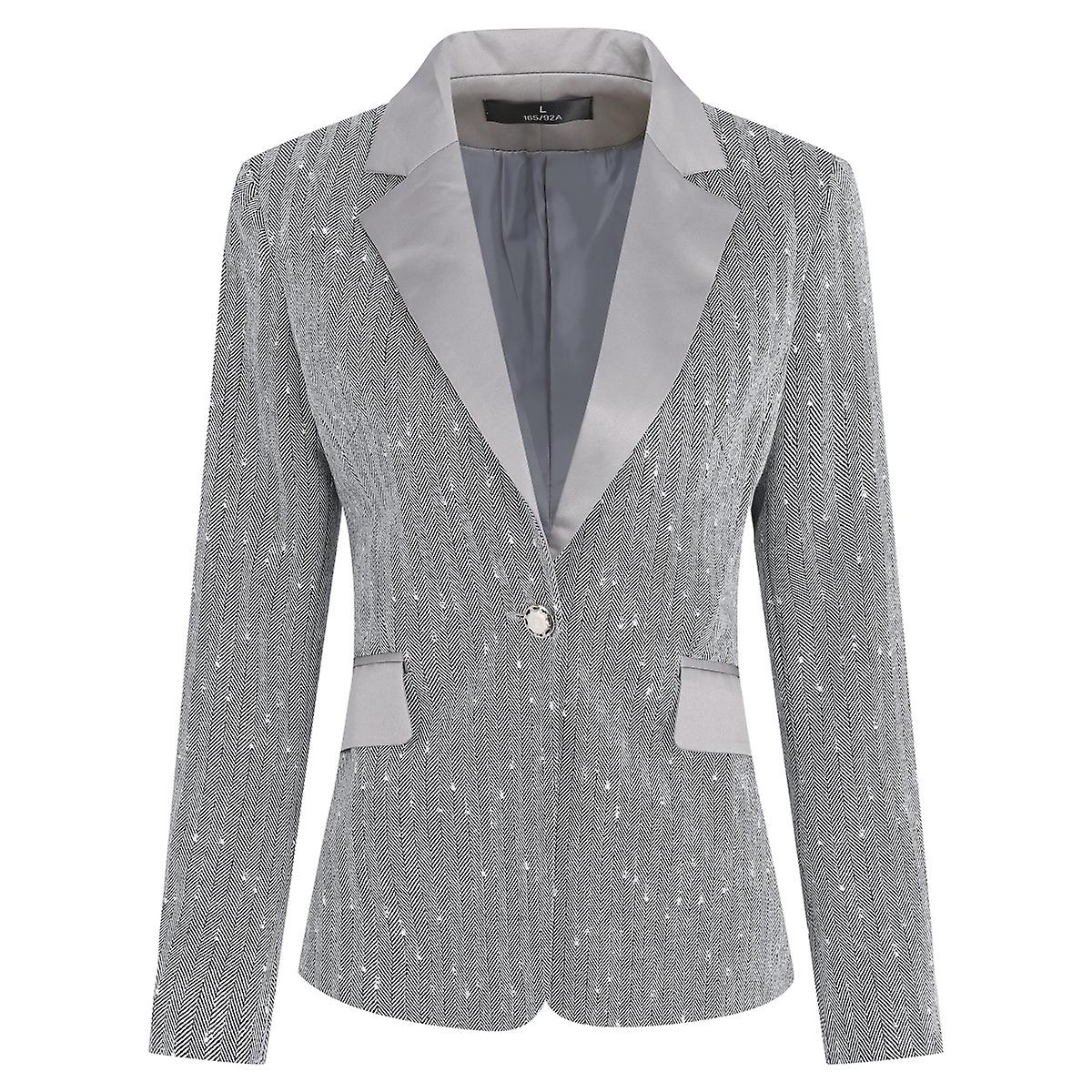 Cloudstyle Women's Bussiness 1 Button Regular Fit Striped Blazer