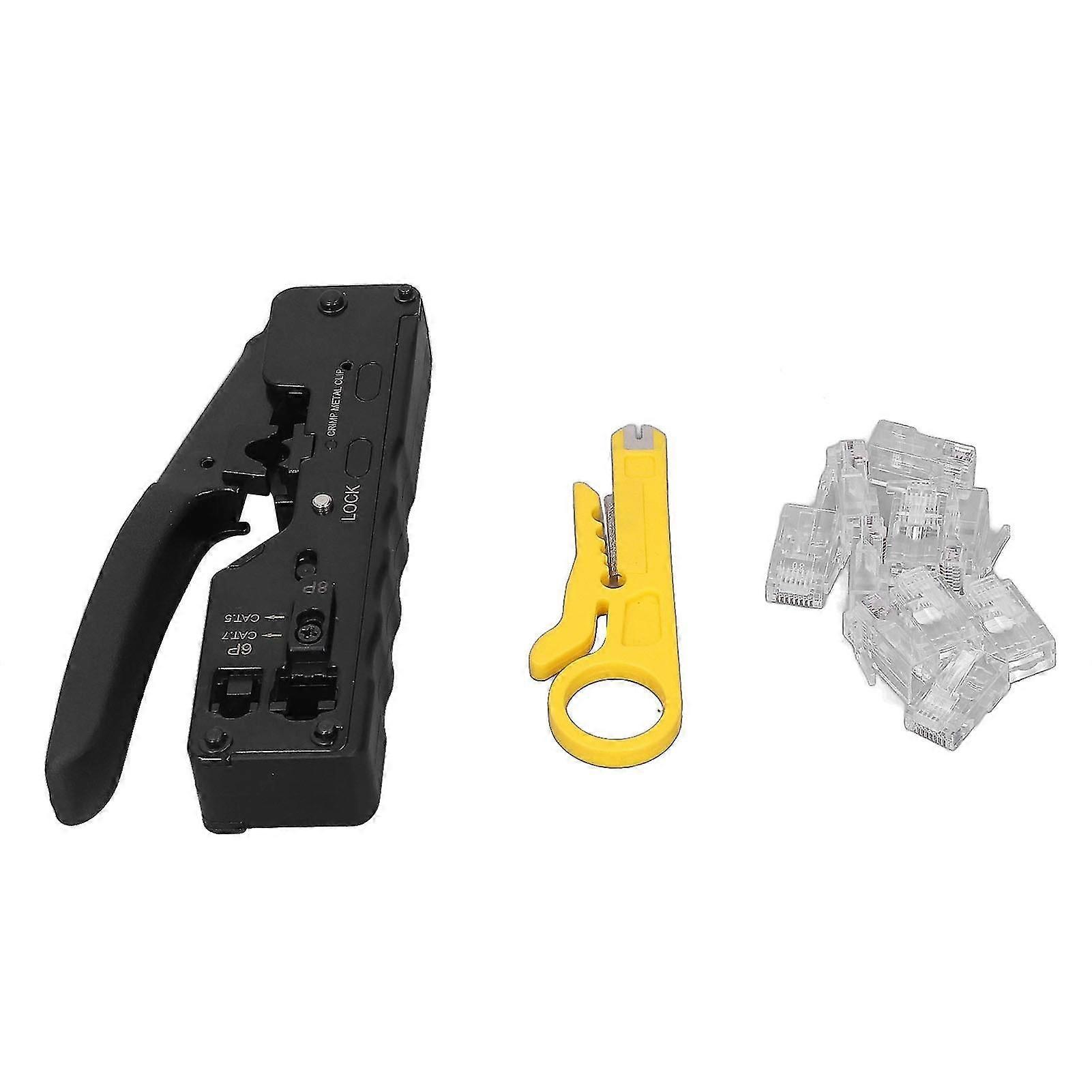 Cable Crimping Pliers Set Ratcheting Net Cable Crimper Stripping Cutting Tool with 10 Pcs RJ Connector