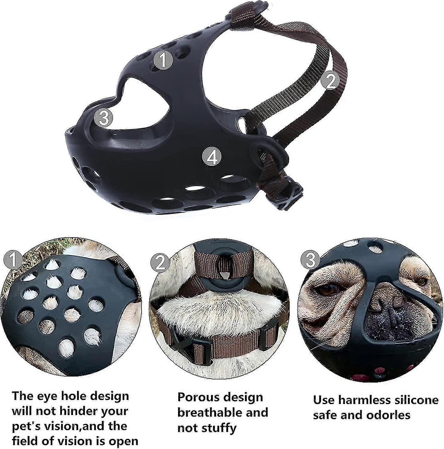 Dog Muzzle For Short Snout Dogs, Soft Silicone Muzzle For Biting Chewing, Ideal For Flat-faced Aggressive Dogs