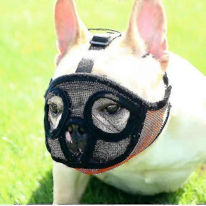 Dog Muzzle With Short Snout Adjustable Breathable Mesh Muzzle For English French Bulldogs Anti-bite Chewing