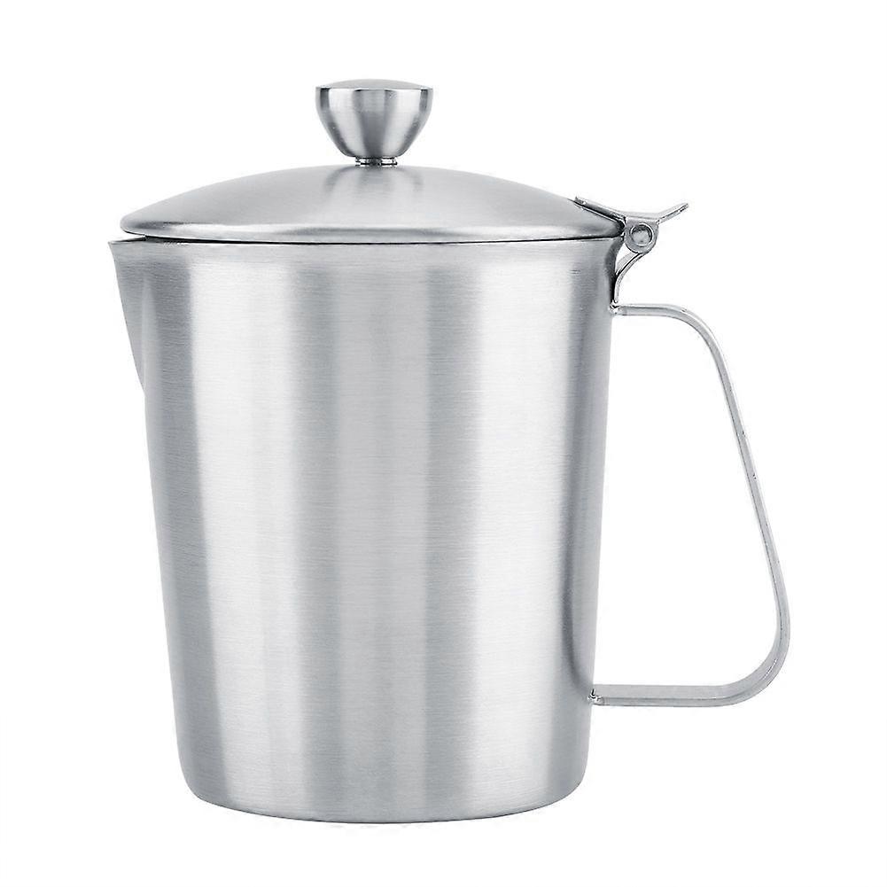 This milk frothing pitcher gives you the professional edge so you can enjoy perfectly steamed or frothed milk any time you want. With this milk pitcher, you can even make your own latte art. It helps you turn your milk or cream into rich, delicious, fluffy foam. Mirror finished stainless steel looksgreat on your counter-top. A must have for any coffee enthusiast.Features:Made of high quality stainless steel with mirror polishing, rust free and durable for many years, healthy for your everyday use.The design of dripless spout means no mess and perfect for pouring, makes cleaning a breeze. Both sides of this frothing pitcher are stamped with measuring scales which makes measuring more accurate and easier.Extra-wide handle for safe, comfortable use as well as firm grip.Usesas milk frothing pitcher, steaming pitcher, coffee creamer pitcher, measuring pitcher or cup, Perfect for milk, espresso, coffee, etc.Specification:Condition: 100% Brand NewMaterial: Stainless SteelColor: SilverCapacity: 500 / 700 / 1000 / 1500 / 2000ml(Optional)Package list:1 * Milk Frothing PitcherNote:1. Please allow 1-2 cm error due to manual measurement and make sure you do not mind before ordering.2. Please understand that colors may exist chromatic aberration as the different placement of pictures.