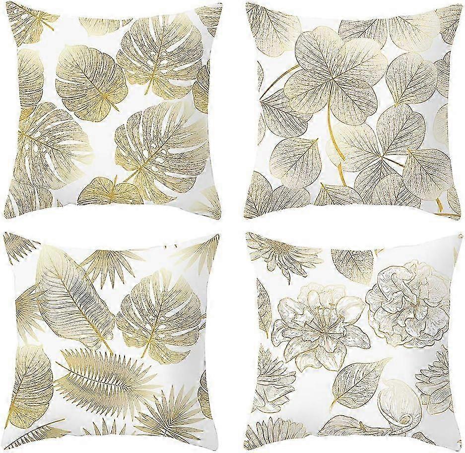 Elegant Velvet Sofa Pillow Case with Golden Leaves Design - 45x45cm Perfect Home Decor Protector