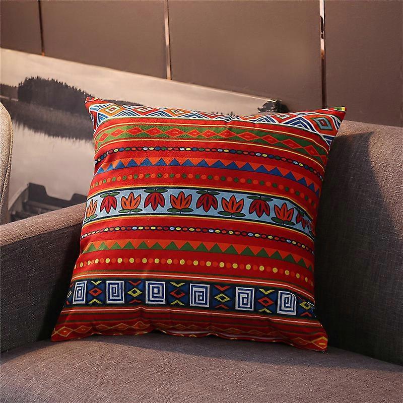 Vintage decorative pillowcase, 18 x 18 inches 45 x 45 cm Bohemian pattern peach skin pillowcase, home sofa decoration -004