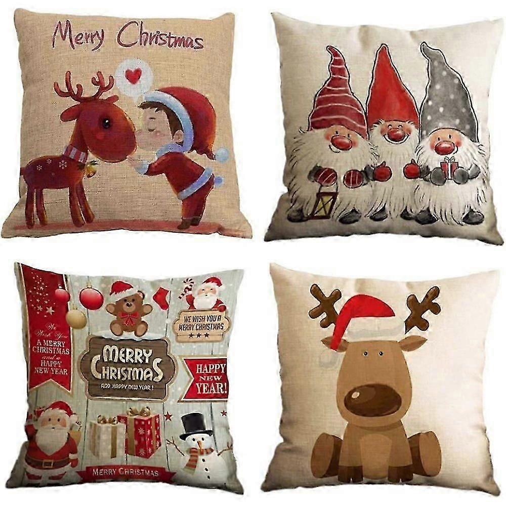 Polyester Fabric Square Pillowcase, Retro Flower Decorative For Festive Gift Ideas, Linen Material Set Of 4