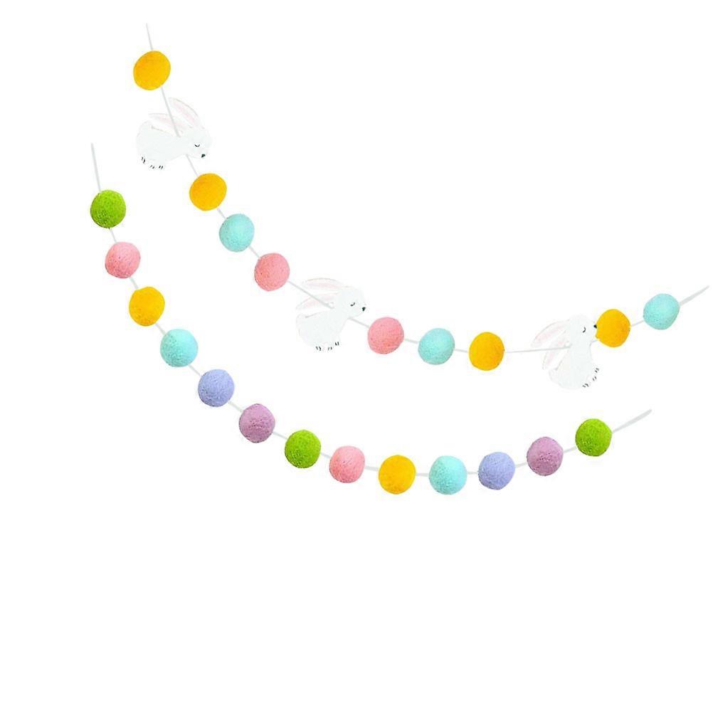 Easter Banner with Colorful Bunny Hair Balls Decorative Garland for Party, Indoor Outdoor Hanging, Festive Decoration for Hotels and Shopping Malls