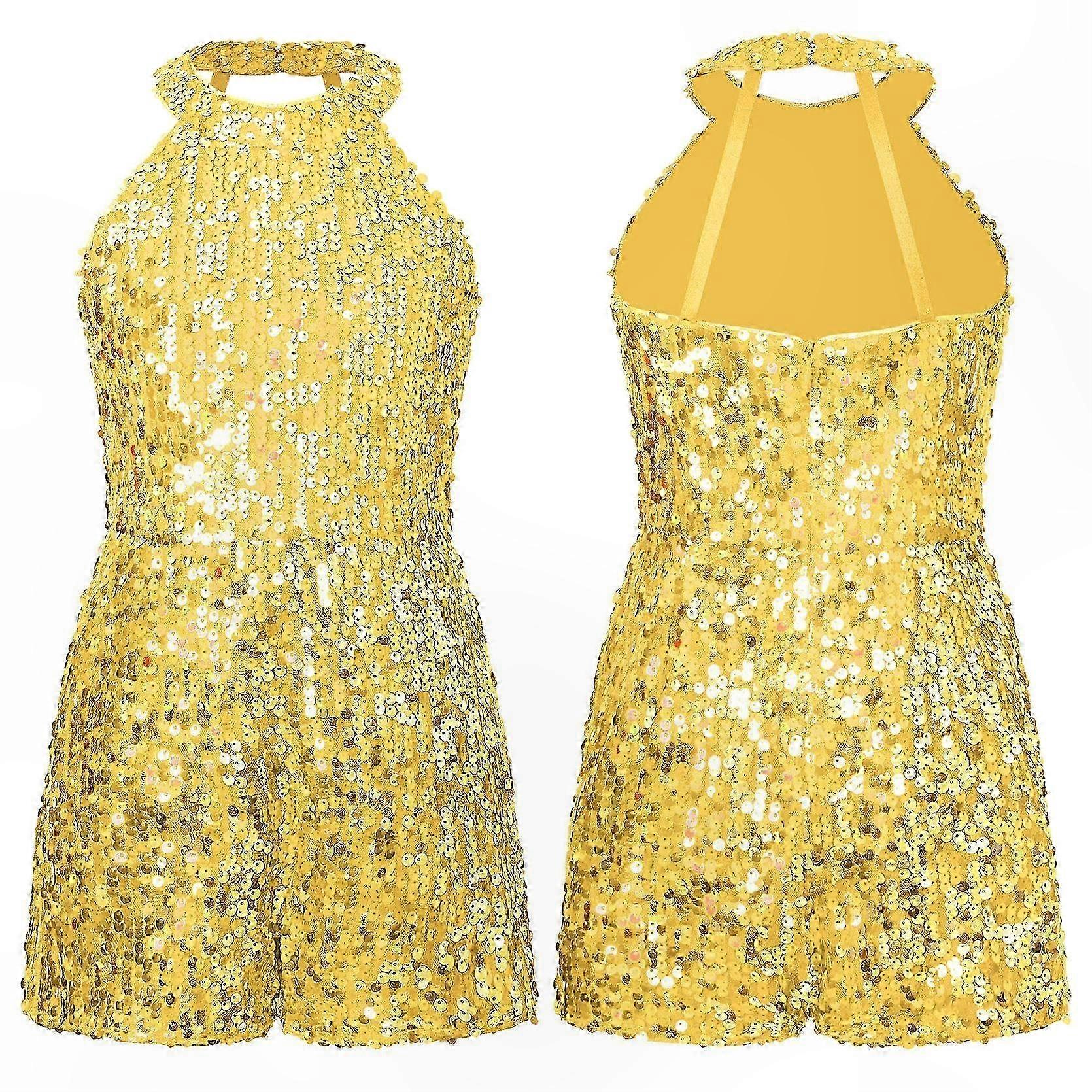 Shiny Sequin Halter Leotard for Girls Sleeveless Dance Jumpsuit Stage Performance Costume