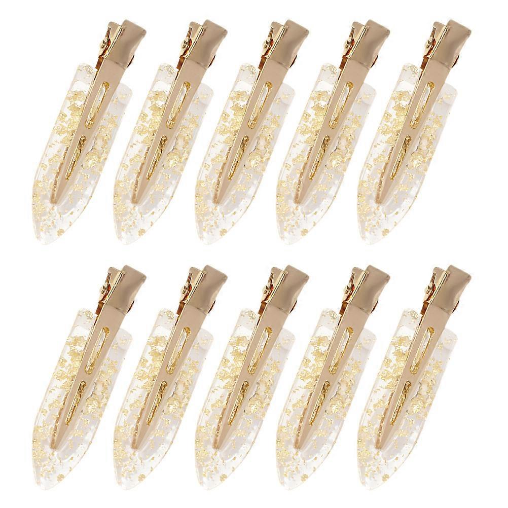 No Dent Hair Clips 10pcs Non Slip Transparent Duckbill Barrettes for Women Teens, Gold Glitter Styling Clips for Bangs Sports Makeup Sectioning