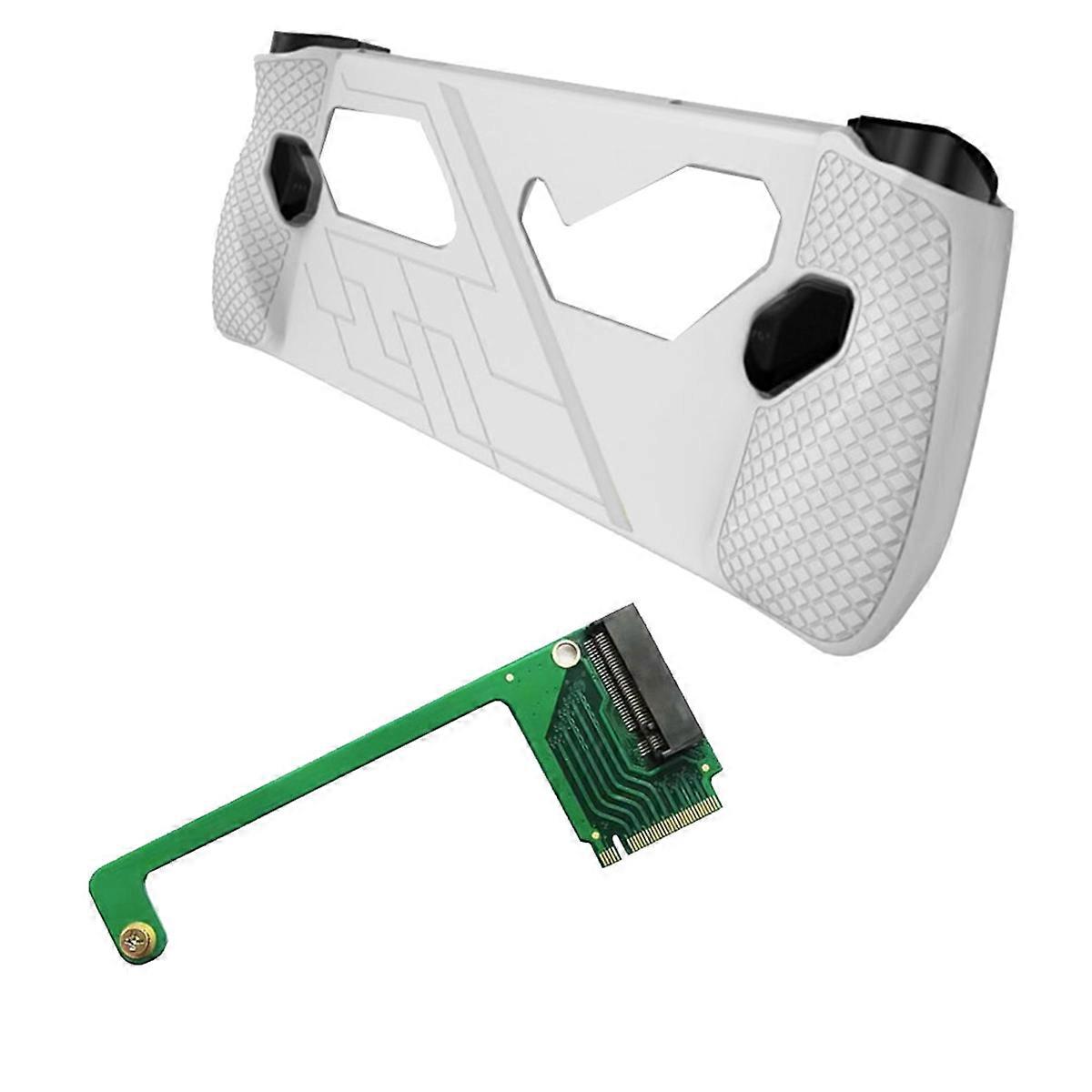 1. This product supports for Ally handheld console to replace 2280 specification M.2 NVMe solid state drive. 2. Support PCIe 4.0, no restrictions on hard drive performance, etc.! 3. Non-destructive installation, the adapter card and hard disk are fixed as a whole, and the reliability is better. Key points to note before purchasing: This product also supports 2280 PCIe 3.0 M.2 NVMe hard drive, but the speed is slightly slower. M.2 has two types of hard drives: one is M.2 NVME PCIE protocol, and the other is M.2 NGFF protocol hard drive. Only supports M.2 NVME PCIE protocol hard disk 2280 Does not support M.2 NGFF protocol hard drive Due to different batches, the appearance, color and printed words of the product , which not affect the use. Material: PCB colour: B-green+white Package Contents: 1 x Transfer Card 1 x Silicone Case Only the above package content, other products are not included. Note: Light reflection and different displays may cause the color of the item in the picture a little different from the real thing. The measurement allowed error is +/- 1-3cm.