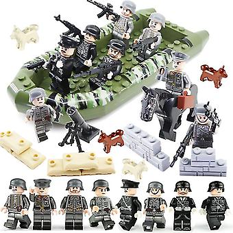 لبنات البناء العسكرية ضابط قارب مطاطي شرطة حرب حصان هاون الأطفال تجميعهم لبنات البناء