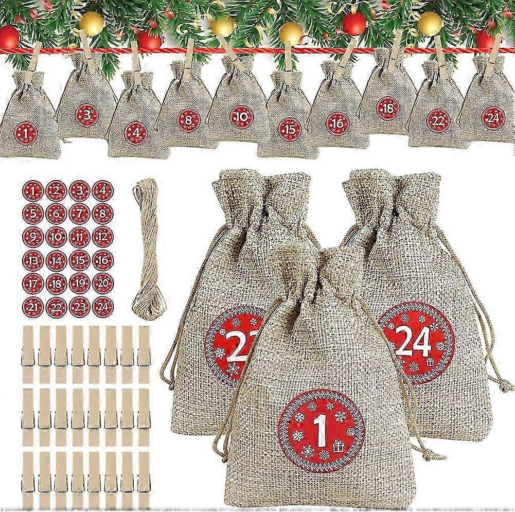 For Advent Calendar - Burlap Bags, Advent Calendar 2020, Christmas Gift Bags with 24 Numbered Advent Stickers, Festive Countdown Calendar