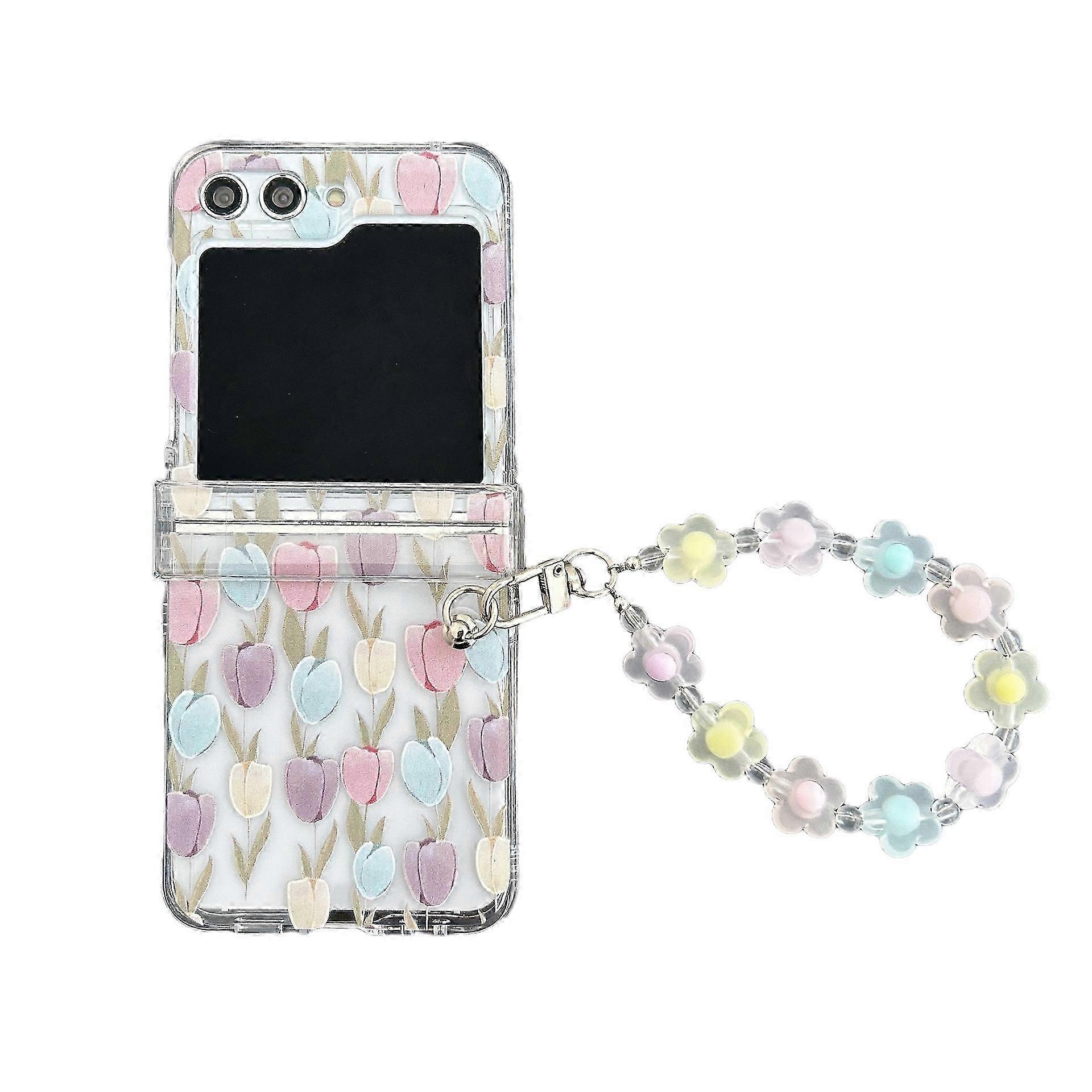 For Samsung Galaxy Z Flip 6 phone case with wristband, cute crystal clear phone case, sparkling bracelet wristband, hinge protection phone case Samsun