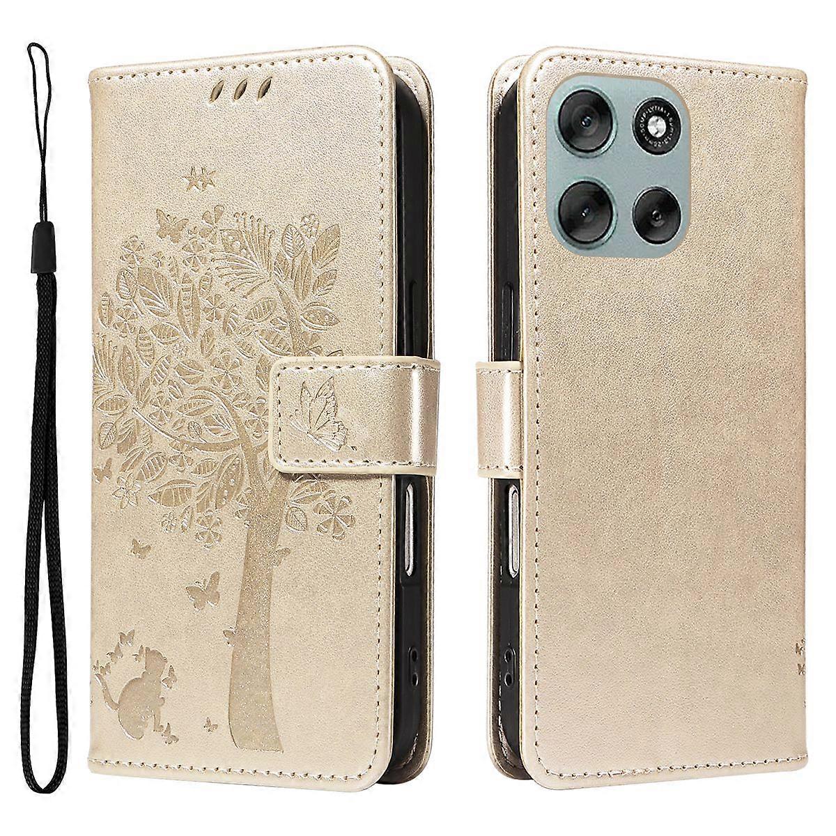 For Motorola Moto G56 5G Phone Case with Stand Cat Tree Pattern Leather Wallet Mobile Cover
