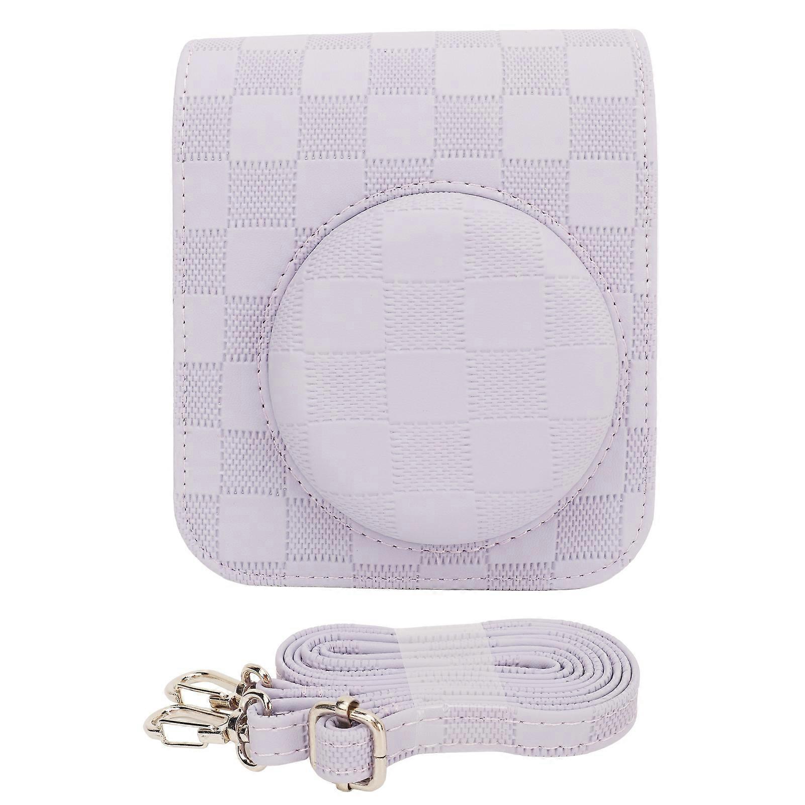 for Mini 12 Camera Protective Case Vintage Checkerboard Plaid Portable Travel Storage Cover Bag with Shoulder Strap Purple