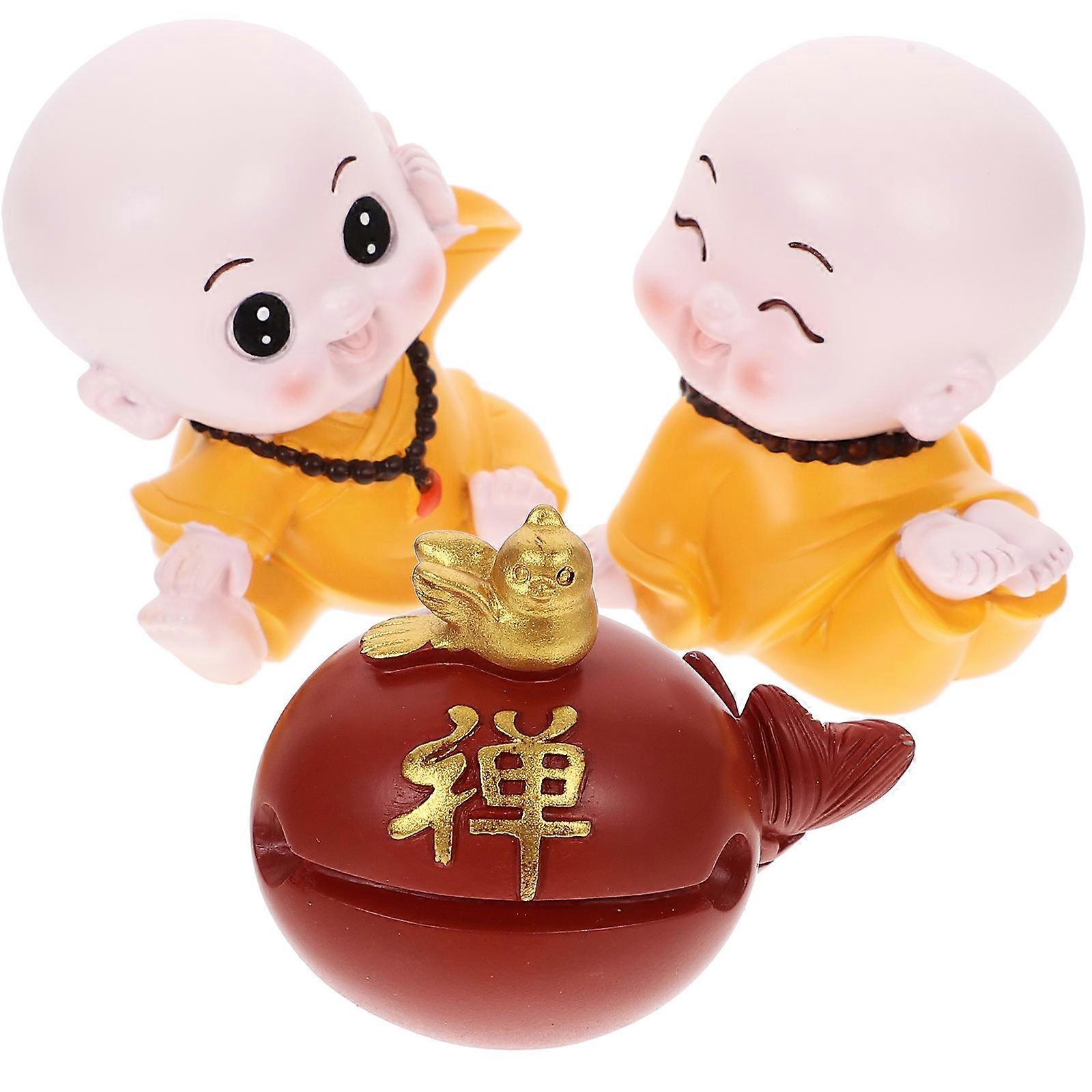 Cute Small Monk Statue Resin Figurine Decorative Car Dashboard Ornament for Home and Office Praying Charming Cartoon Design Compact