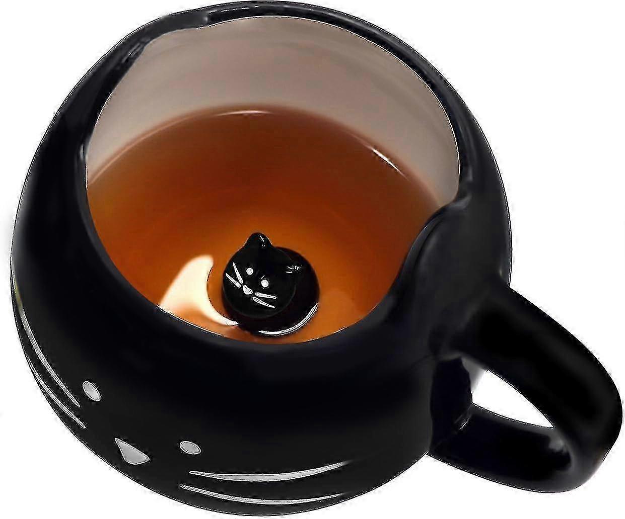 Cute Ceramic Cat Coffee Mug 12 Oz Cat Lovers Kitty Tea Mugs Gifts For Women Girls Black-Yvan