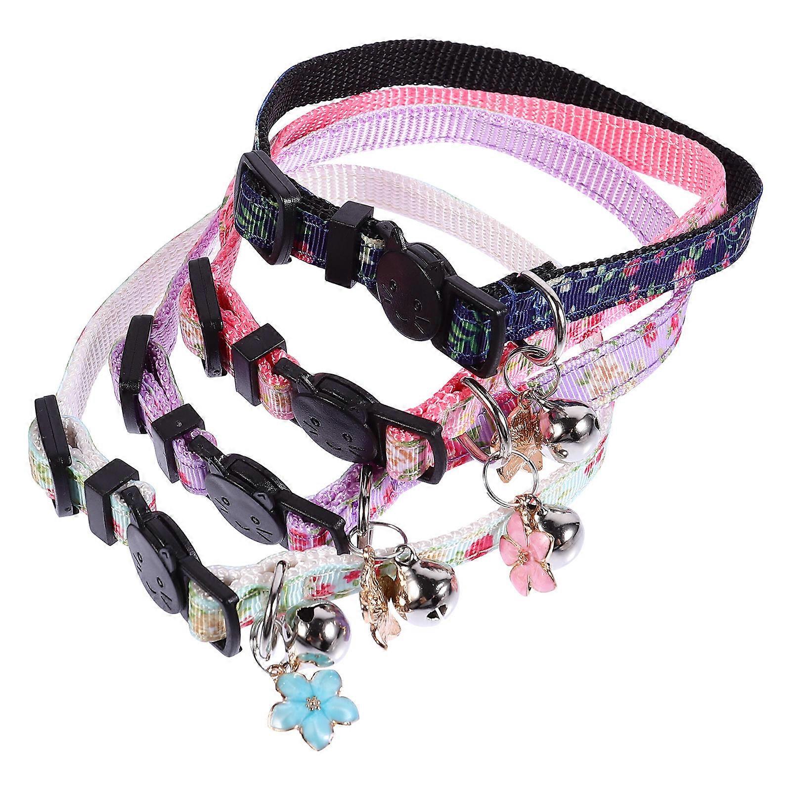 Cute Kitten Collar Floral Design Adjustable for Pet Cats Comfortable 4Pcs