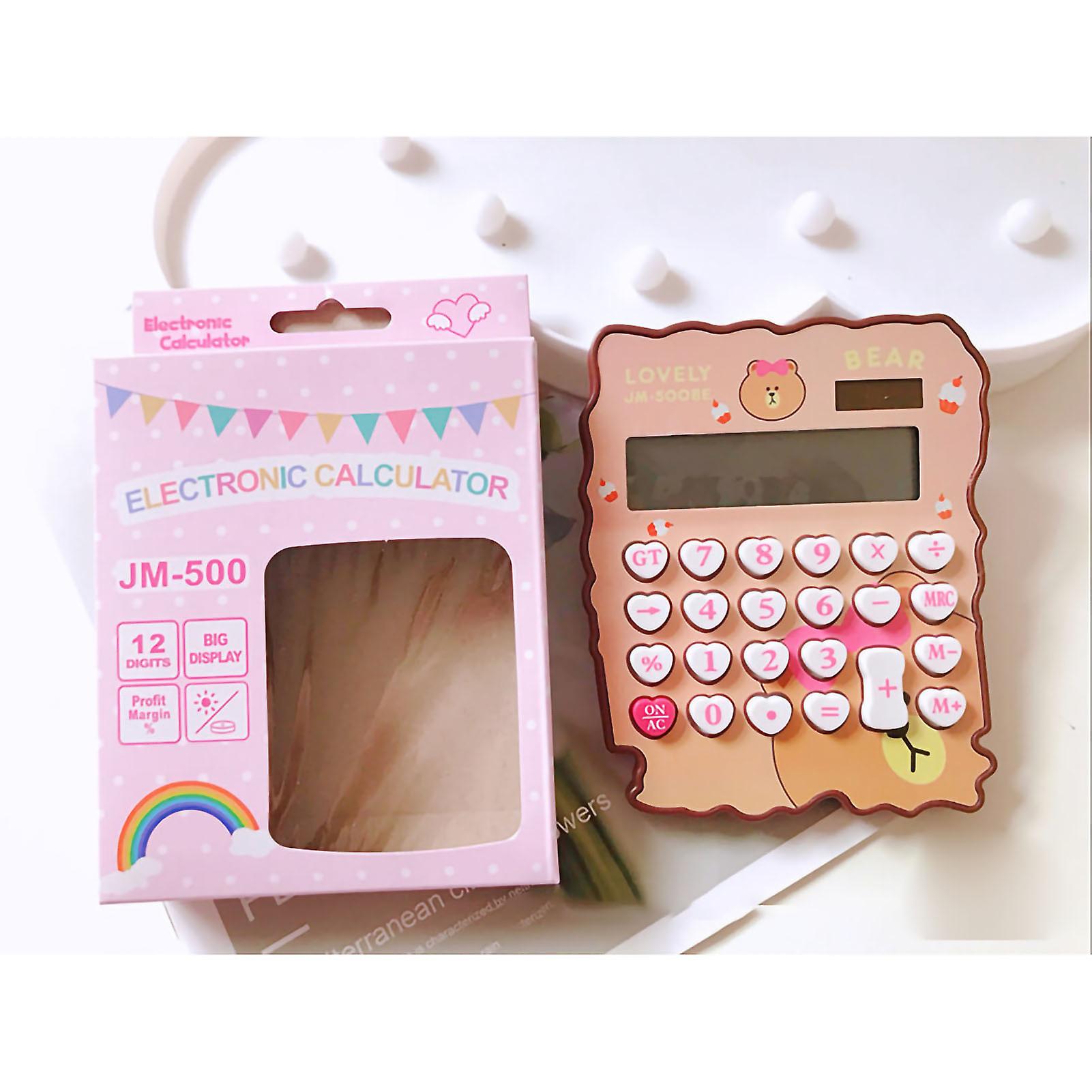 Cute Cartoon Desktop Calculator Solar Powered Sweet Style 12-Digit Portable Calculator for Students Girls Sister Bear