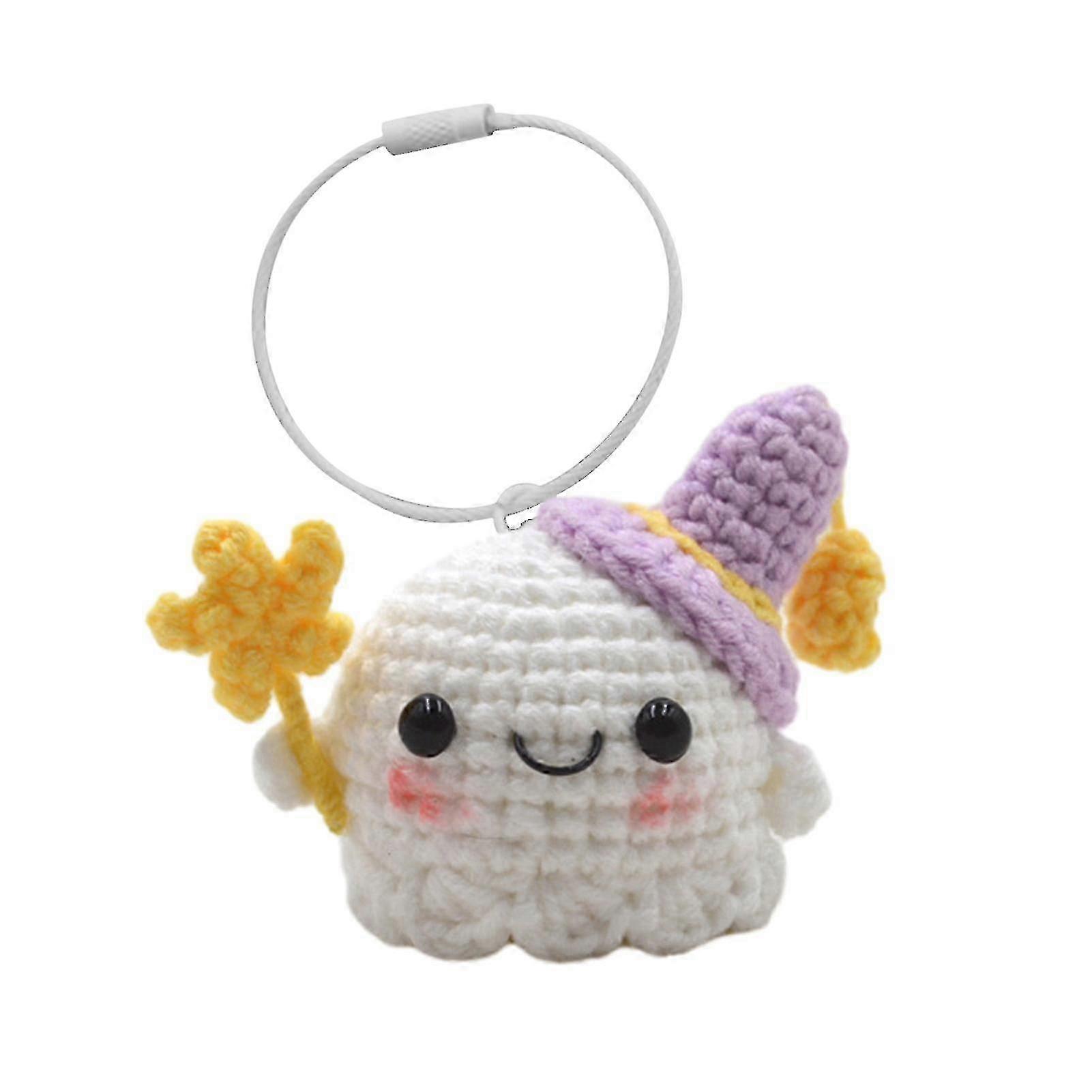 Cute Crocheted Ghost Doll with Witch Hat Star Portable Ring Handwoven Knitting Little Ghost Toy Pendant Ornament Friends Family Gift