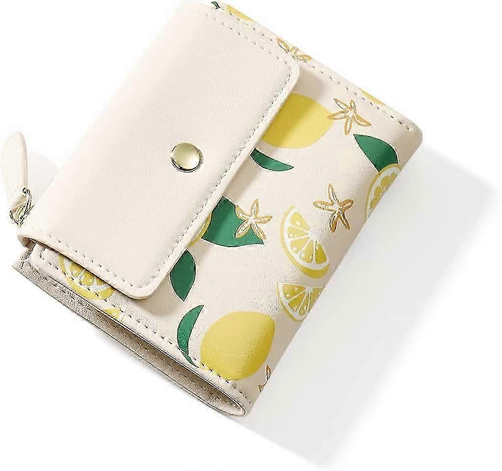 Cute Lemon Zipper Pocket Trifold Small Wallets Coin Pouch (White, Lemon Print)