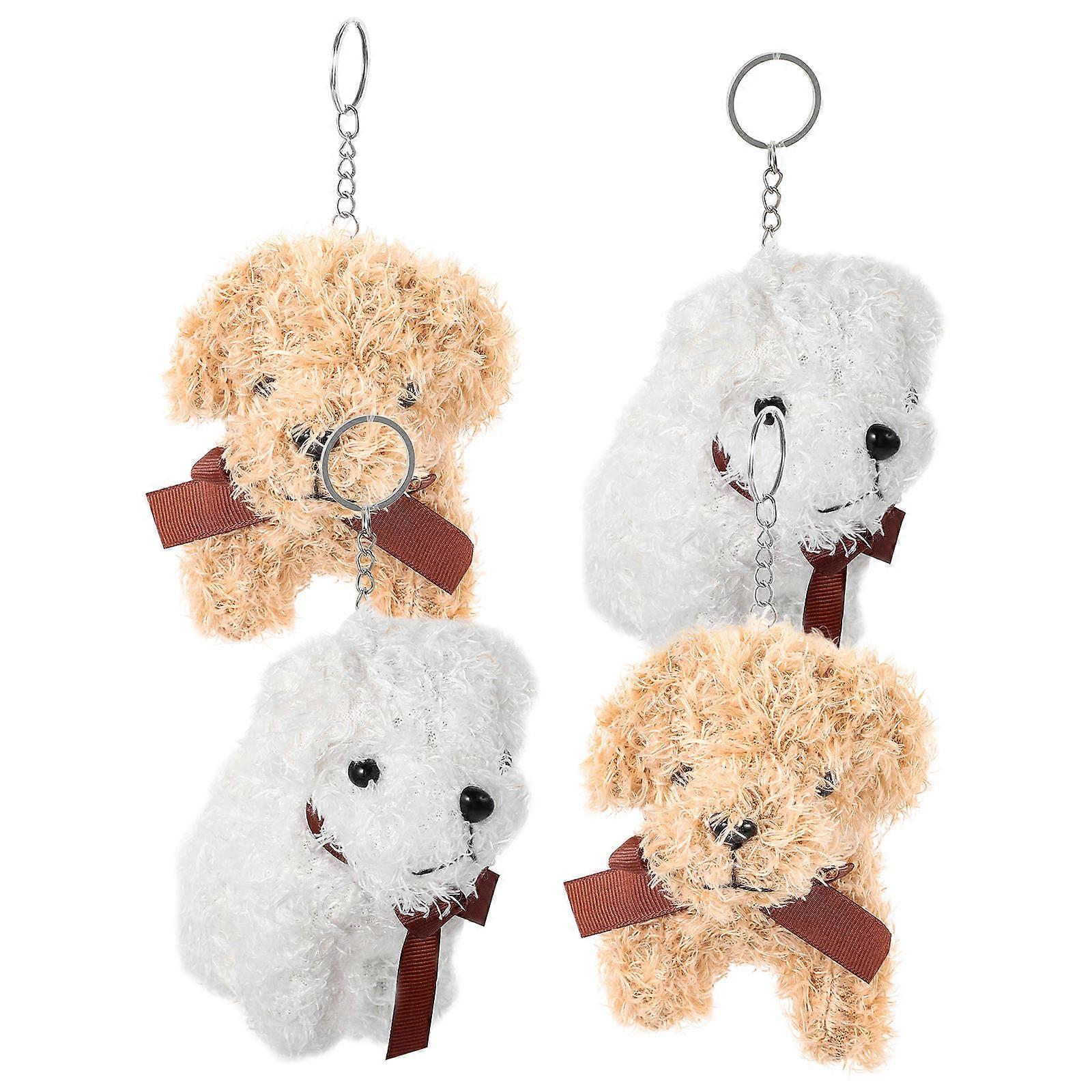 Cute Dog Keychain Bag Hanging Ornament For Christmas Parties Assorted Color Mini Plush 4Pcs