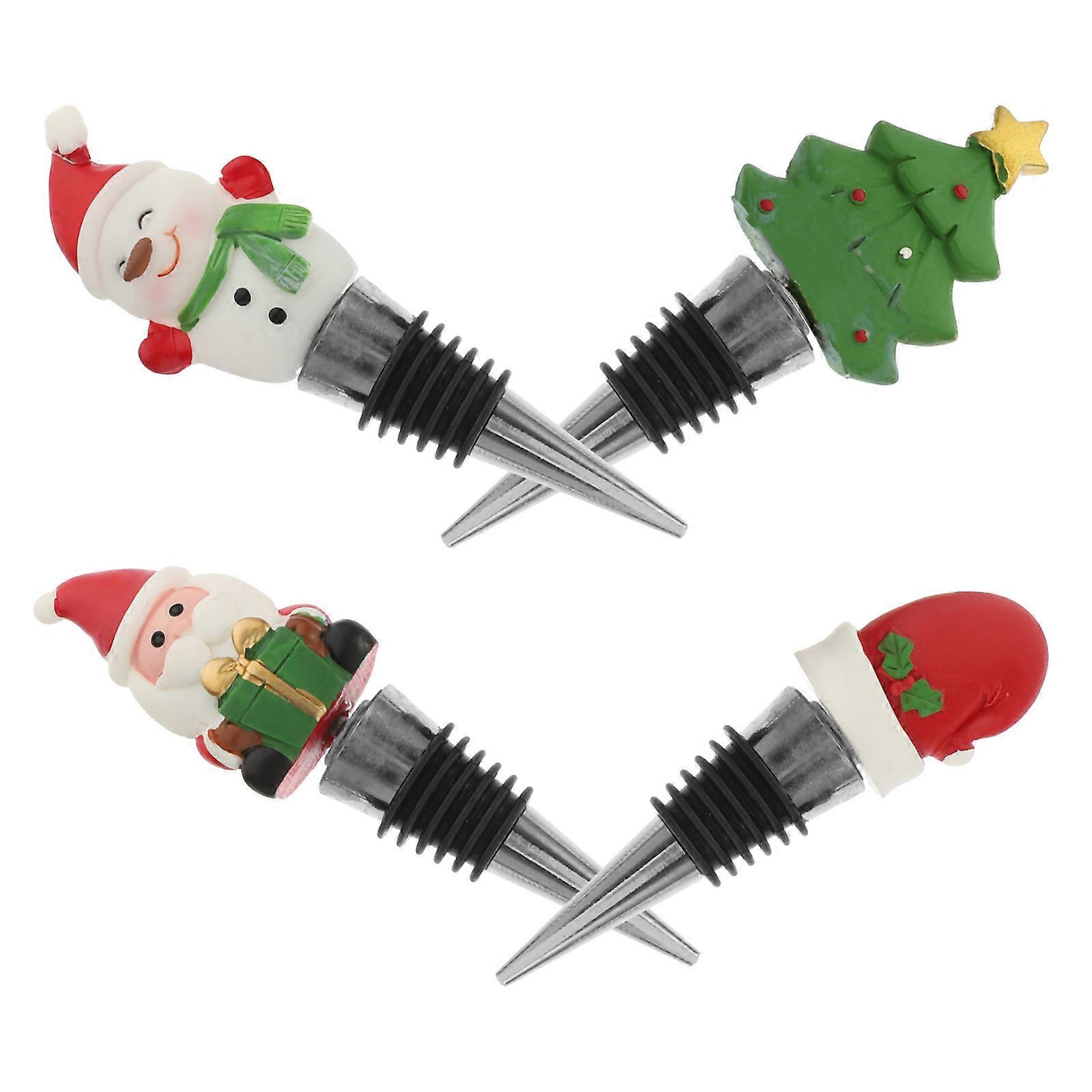 Cute Holiday Wine Stoppers Santa Hat Design For Christmas Party Stainless Steel Reusable 4Pcs
