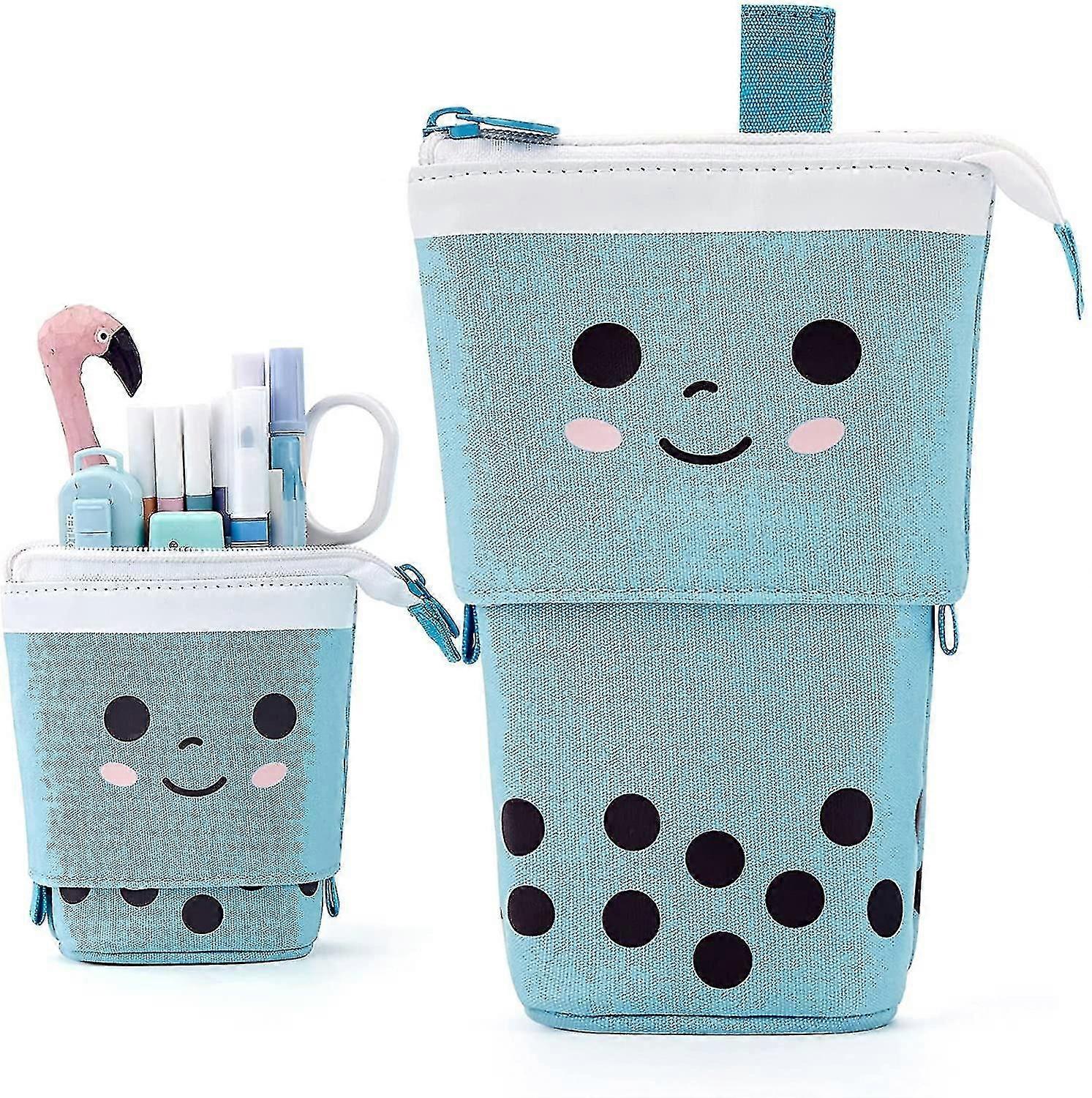 Cute Pen Pencil Telescopic Holder Pop Up Stationery Case,blue Milk Tea