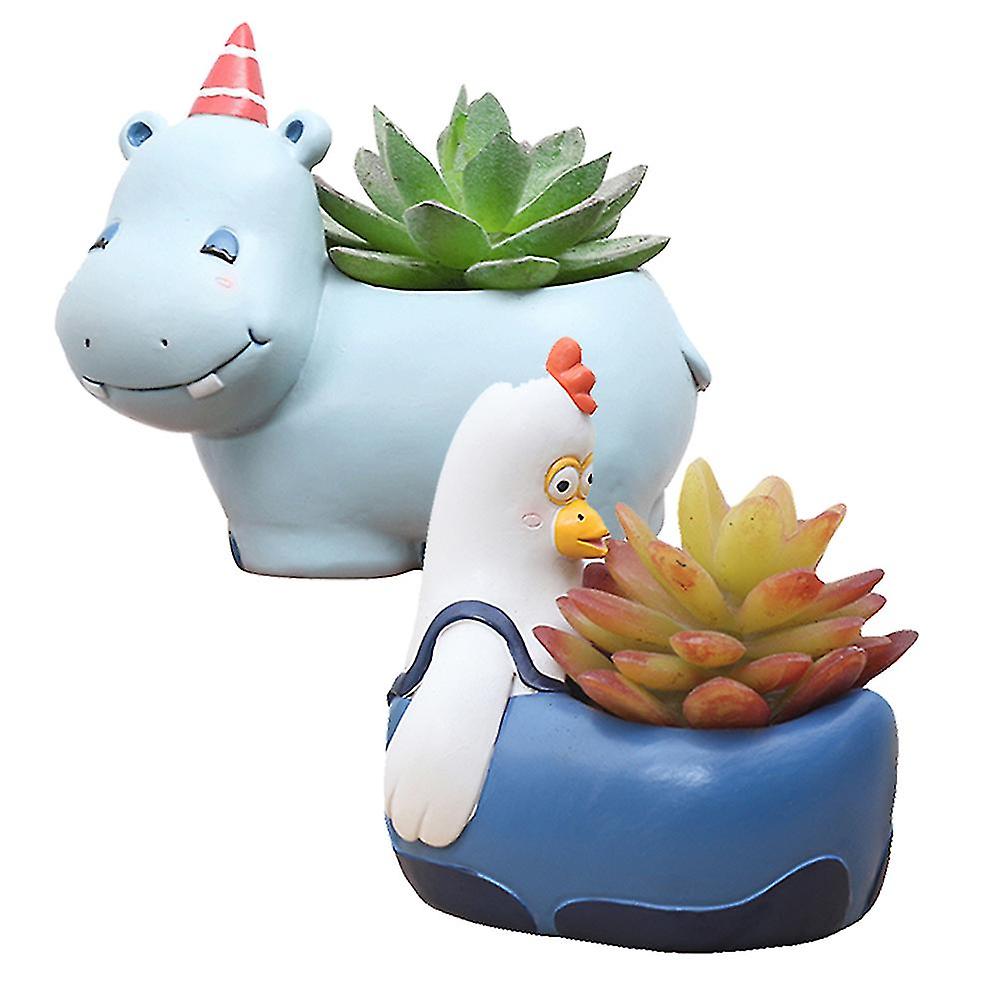 Cute Little Hippo Chicken Home Gardening Yard Decor Succulent Plants Flower Pot
