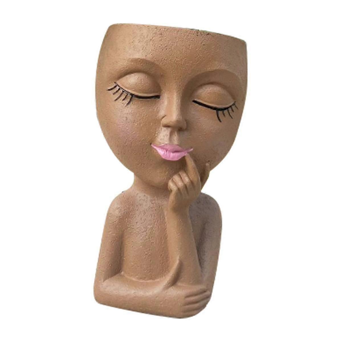 Cute Flower Pot/face Flower Pot, For Indoor Plants, Girl Face Flower Pot Cute Lady Flower Pot,brown