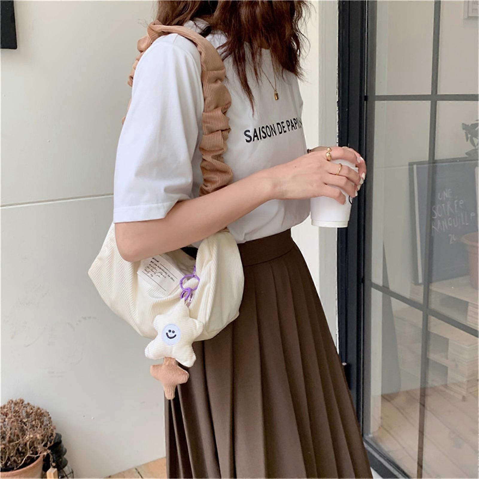 Cute Keychain Corduroy Cartoon Pattern Pendant Decoration for Women's Bag Beige Brown