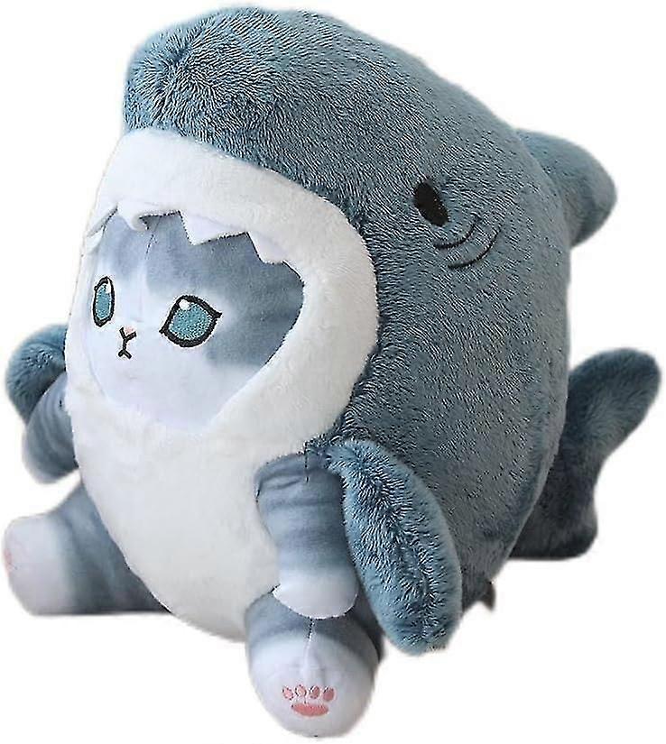 Shark Cat Plush Toy, Cute Fried Shrimp Shark Stuffed Animals Doll, Kawaii Shark Cat Plush Pillow Toy Birthday for Kids Boys Girls (8inch, Blue Grey)