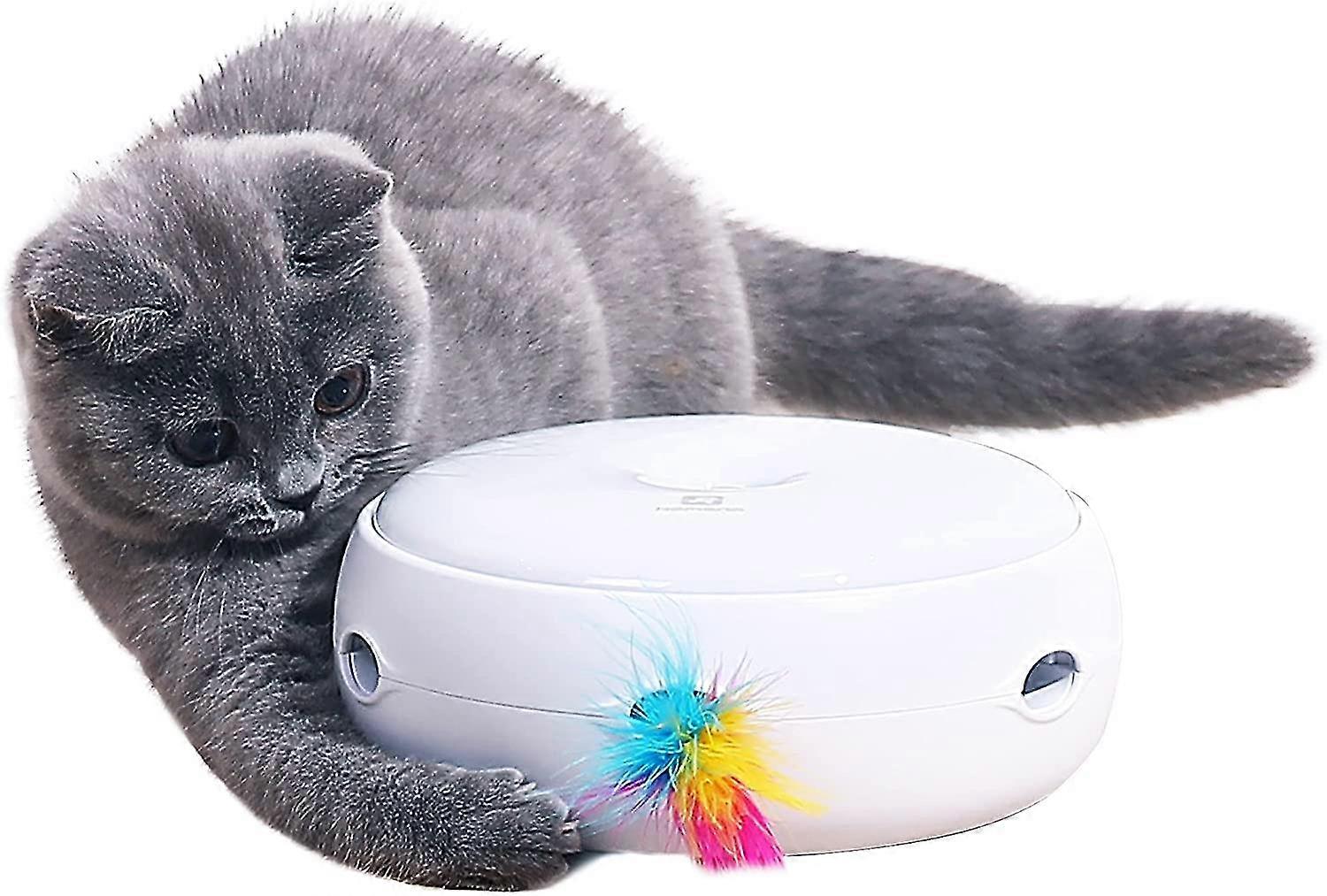 2 in 1 Educational Cat Toy: The intellectual cat toy, which is a combination of moving ball and retractable springs, can stimulate the cat's senses and hunting instinct, enrich the cat's life, and help the owner establish a good interaction relationship with The interactive cat toy has three modes to tease the cat, including high speed, medium speed and low speed. Don't let cats get bored alone: How long have you been separated from your cat? This cat toy is a 2-in-1 interactive toy with a spinning orbital ball to attract your cat's attention and six holes to stretch your feathers at will, keep your cat healthy and have more fun, and being alone will not feel lonely and boring. High quality material: It is made of ABS, environmentally friendly and healthy, the overall design is smooth and round, and will not harm your pet. There is a sponge pad on the bottom, which is very stable and can withstand the power of the cat without slipping easily. Easy to clean. Timing function: The interactive cat toy has 4 working modes to tickle the cat, different color lights light up in each mode, the intelligent auto-rotating cat toy can play for 10 minutes, then turn off and then turn on automatically at 4 hour intervals and repeat. If you want your pet to keep playing, just turn it on manually. 2 Charging Methods: The indoor cat toy has 2 power options. The electric cat toy can be installed with 4 AA batteries or use a 5V/1A adapter to power it. The toy is easy to use, brings endless fun and is a perfect gift for kittens/cats and owners. TIPS: Red double flash means insufficient power, please replace the battery in time.