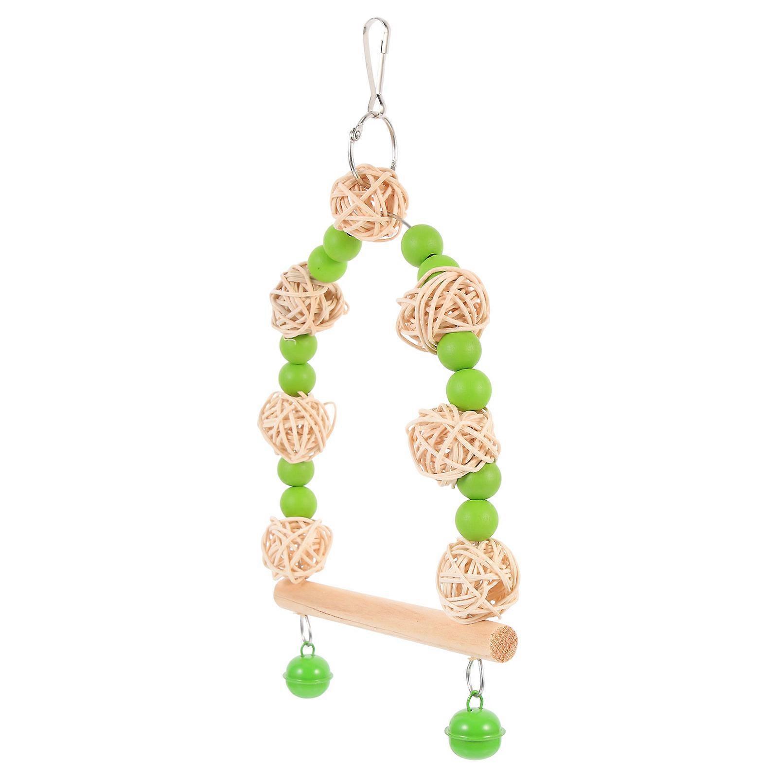 Wood Bird Swing Toy for Cockatiels and Parrots with Detachable Ring Design in Green, Easy to Clean and Install