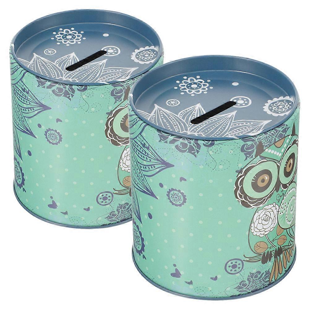 Money Bank Toy Owl Piggy Bank Birthday Present for Boys Girls Tinplate 9.90X8.60X8.60CM Financial Responsibility Development 2Pcs