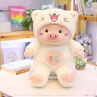 Pig Toy with Bear Hat Embroidery Craft Cartoon Shape PP Cotton Full Filling Skin Friendly Stuffed Plush Pig White 45cm