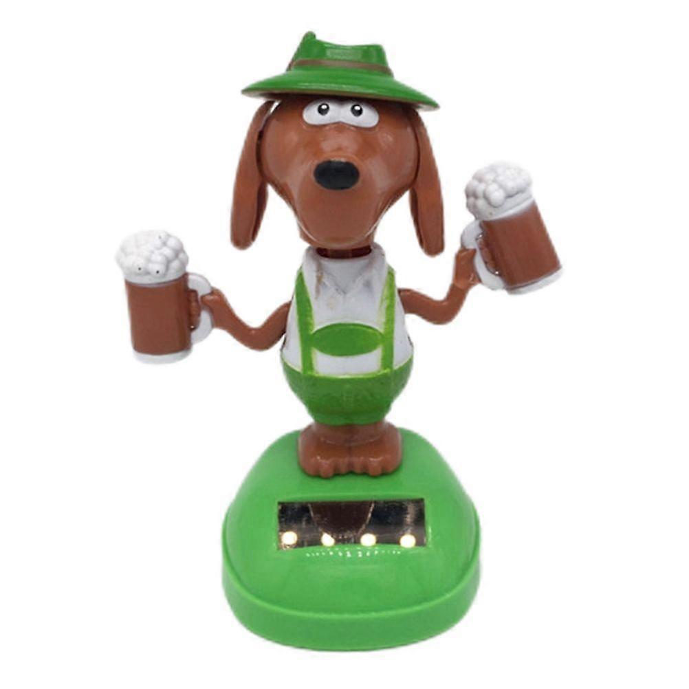 Solar Dancing Toy Cartoon Dog Figure with Beer Solar Swinging Toy Car Decor Home Car Ornament Kids Toys Gifts