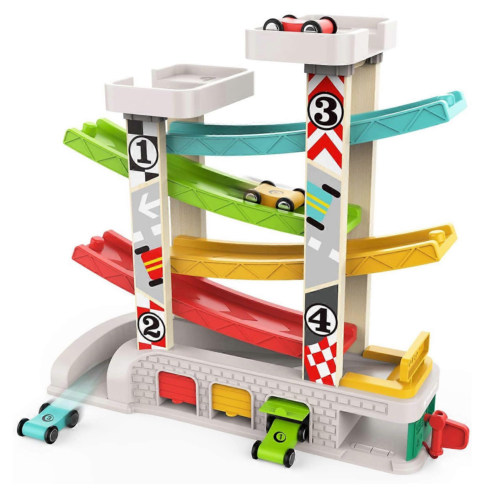 Wooden Marble Run Cars Toy for Kids - Handmade Wood Car Racing Track with Colorful Balls - Educational & Fun Game for Children of All Ages