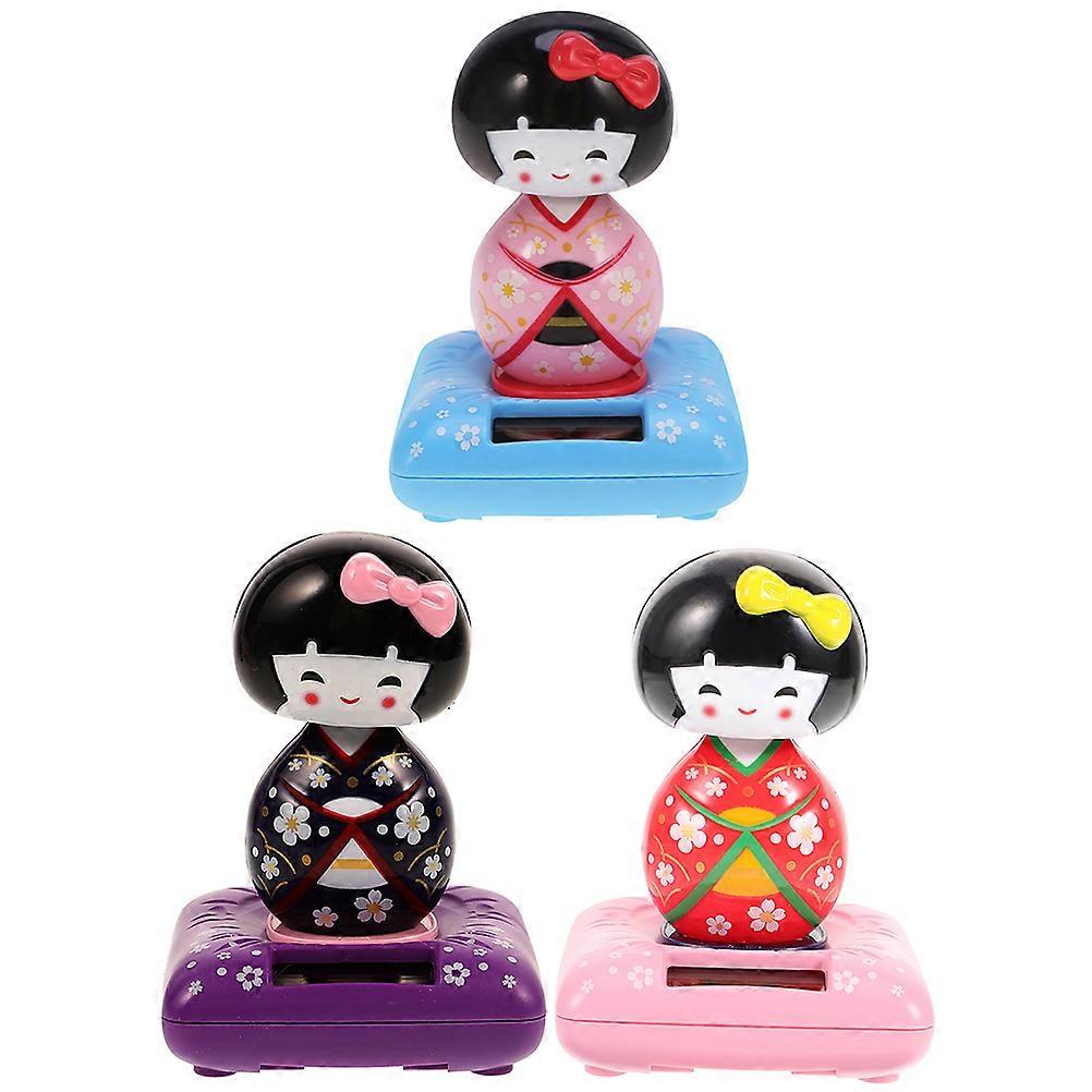Car Toy Ornaments Kimono Doll Shaking Head Pink 7x7x11cm 3Pcs