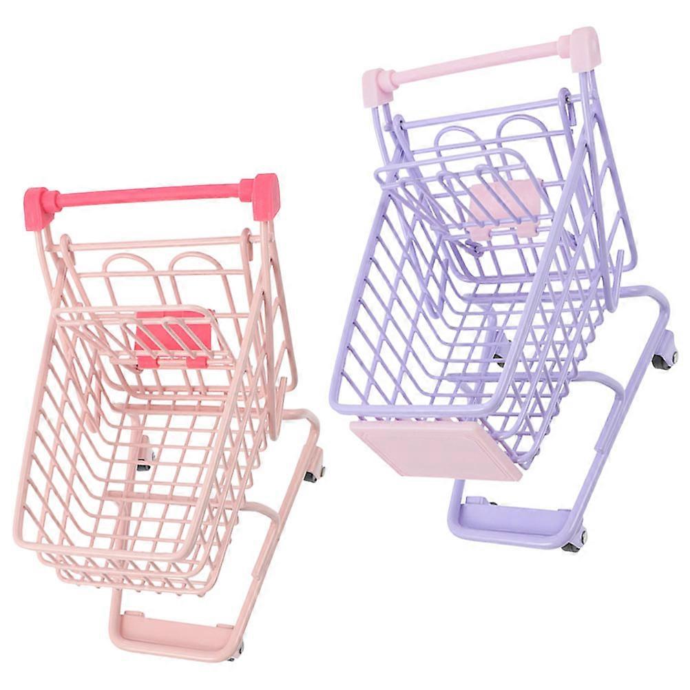 Small Shopping Cart Toy for Kids and Adults Assorted Color Iron and Plastic Decoration and Photo Prop 2Pcs